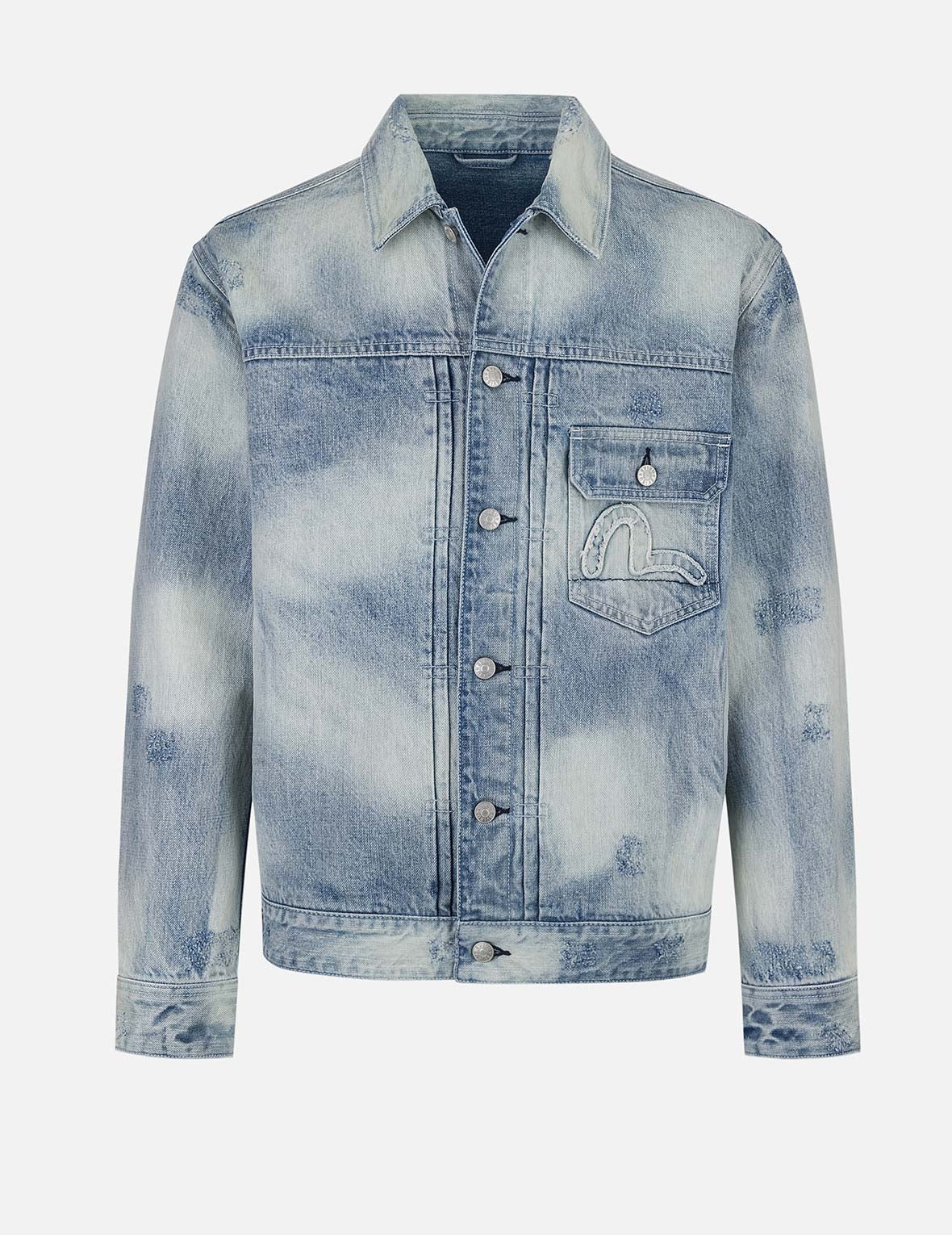 2ESHTM5DJ1044RXDN The everlasting appeal of washed denim combined with fashion effortlessly becomes a part of your closet. With a denim jacket styled in a unique wash and embellished with a subtly distressed seagull patch on the left chest pocket, it showcases your individual fashion flair and shapes a versatile urban dressing aesthetic. - Relax fit - 99% Cotton, 1% Other fibres - Seagull applique embroidery - Button fly, 3 pockets - Godhead leather patch