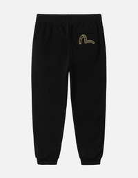 2EAHTM5SP1154XXCT This classic, versatile black sweatpant is your everyday essential, oozing street-ready style. The front boasts a striking gold-thread EVISU logo embroidery, while the back pocket shines with a detailed seagull brocade applique. Its sleek, minimalist design effortlessly transitions from day to night, blending practicality with a bold, trendy edge. - Regular fit - 100% Cotton - Seagull brocade applique - Elasticated waist and cuffs, 3 pockets - EVISU Premium Quality Kamon tag