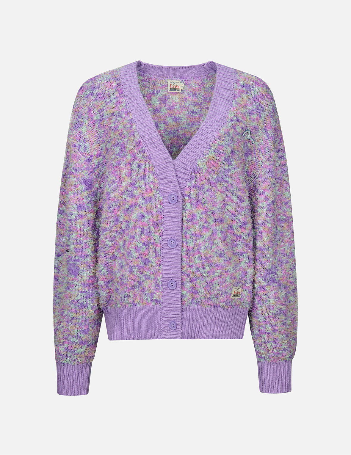 2EAHTW3CN4112CPNT EVISU’s multi-color cardigan is designed for a cropped length, and is punctuated with seagull embroidery at left chest. Simply style yours with skinny jeans and sneakers for a laid-back weekend. - Cropped fit - Seagull embroidery - Long sleeves, button fastening - Custom Made EVISU Heritage tag - 100% Nylon FIT & STYLING: CROPPED CARE DO NOT WASH DO NOT BLEACH DO NOT TUMBLE DRY DO NOT IRON DRY CLEAN ONLY