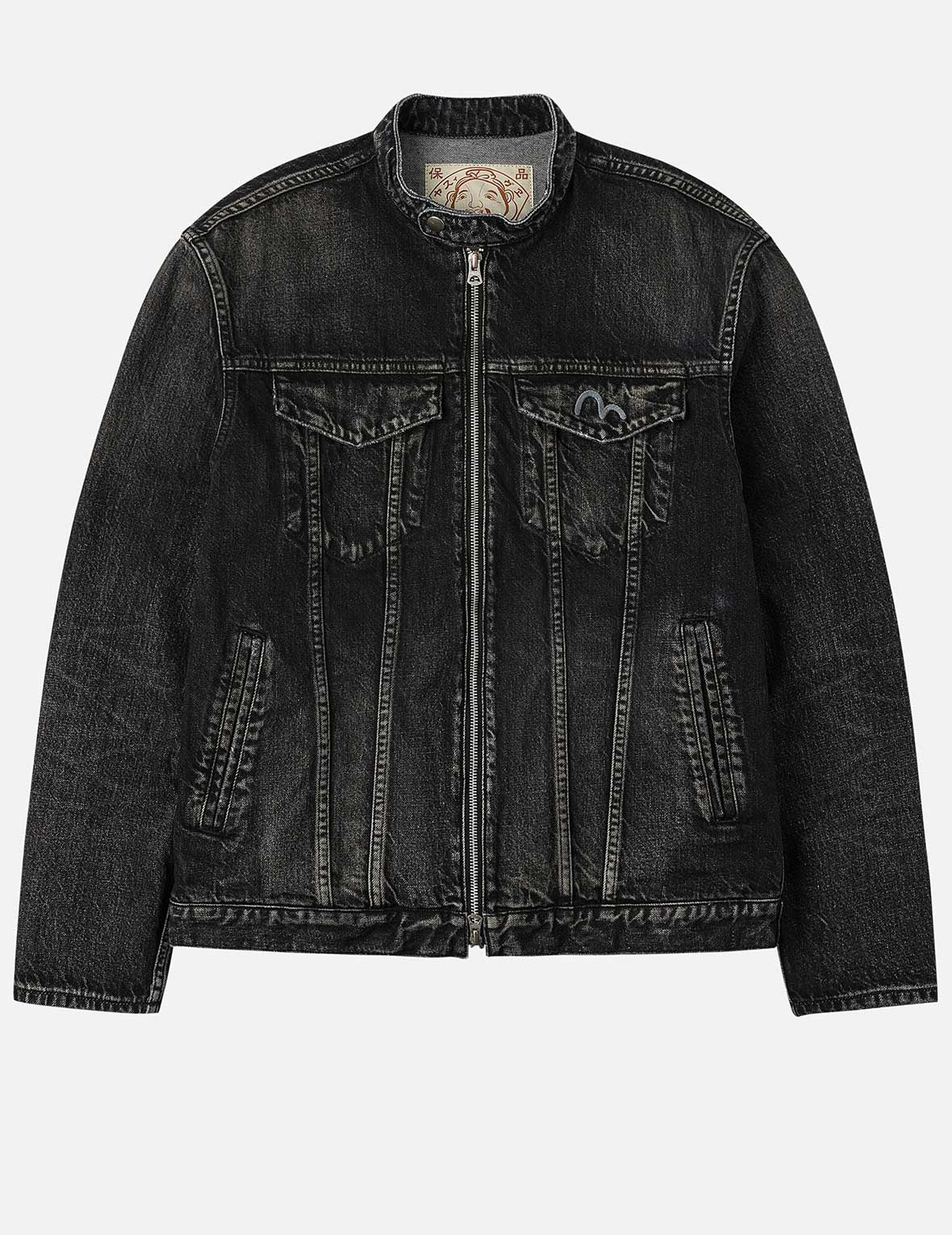2ESEJM5DJ6001XXDN The denim collection is produced in limited quantities in Okayama, Japan, faithfully reviving EVISU’s iconic classics while showcasing exceptional craftsmanship and attention to detail. This denim rider jacket is colored using dip-dye techniques, resulting in uniquely layered tones, with a unique multi-pocket design that adds a fashionable touch to its practicality. Inspired by EVISU’s original designs, the collection incorporates signature 1990s wash elements, seagull embroidery on the chest pocket, combined with a subtle washed effect, creates a rich visual texture. The double-ended zipper design allows for versatile styling, perfectly embodying the blend of fashion and functionality. - Made in Japan - Regular fit - 100% Cotton - Seagull embroidery - Washed - Zip fastening, 4 pockets