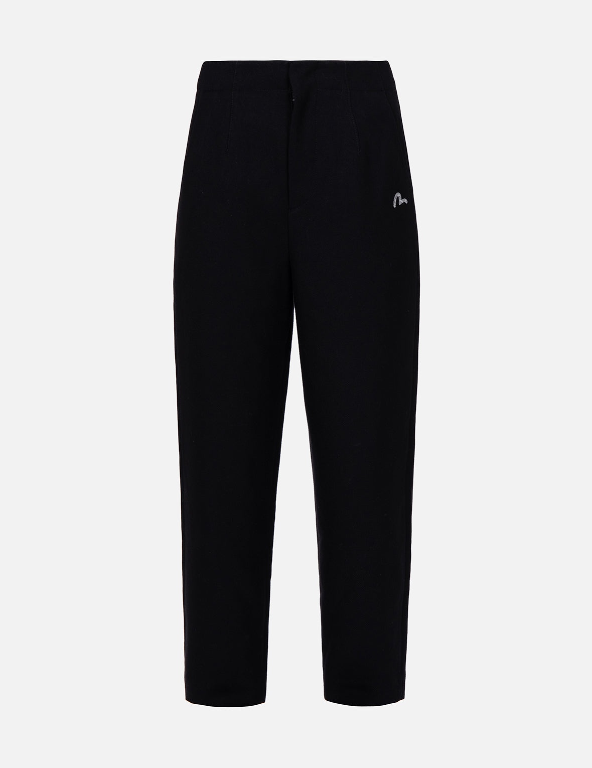 2EAHTW2PT161FFWX Designed for cooler temperature, this pair of taper-fit pants is made from wool-mix fabric that holds its shape, and is finished with embroidery of seagull and EVISU logo to channel brand essence. - Taper fit - Seagull and EVISU logo embroidery - Zip fly, 4 pockets - 68% Polyester, 25% Rayon, 7% Wool
