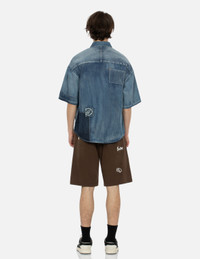 SEAGULL PRINT AND MULTI-PATCHES LOOSE FIT DENIM SHIRT