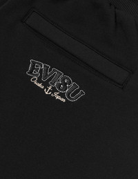 2ESHTW5SP4051LFCT These EVISU sweatpants feature a Seagull and brand logo printed on the front, complemented by an embroidered wave pattern, creating a simple yet layered design. The back pocket is elegantly embroidered with the brand logo, enhancing the visual appeal and adding a lively touch to the overall look. - Loose fit - 100% Cotton - Seagull and logo print - Wave and logo embroidery - 3 pockets, elasticated waistband and cuffs