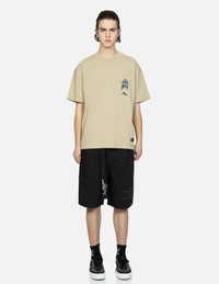 SLOGAN AND KAMON EMBROIDERY CARGO SHORTS