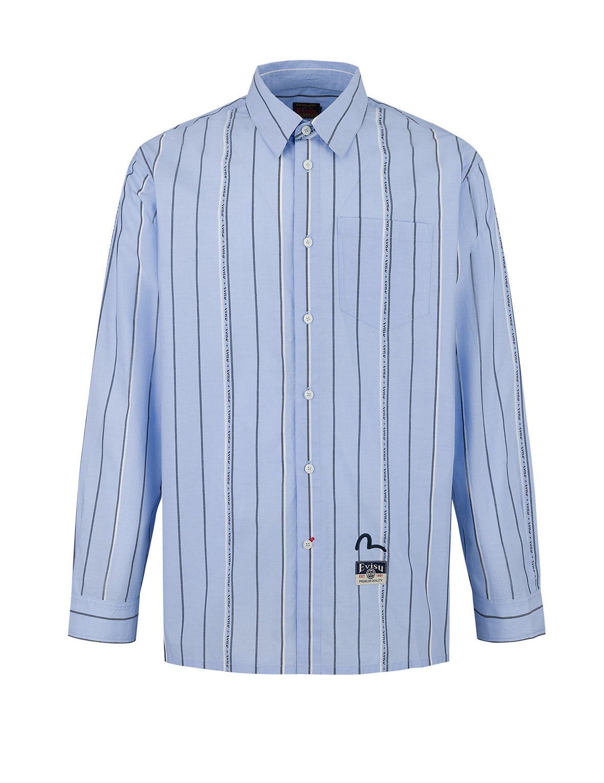 2ESHTM5SL1071FFCT This shirt features a striped design, cleverly incorporating a yarn-dyed logo that presents the brand's exclusive unique stripes. The overall design is clean and simple, with flowing lines complemented by a small Seagull embroidery that adds delicate brand details, showcasing a perfect blend of style and quality, suitable for various occasions. - Fashion fit - 100% Cotton - Yarn-dyed striped logo and Seagull embroidery - Button fly, 1 pockets