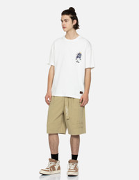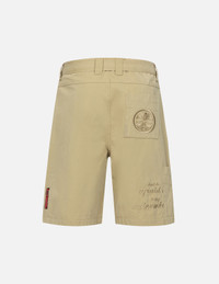 TONE-ON-TONE KAMON AND SLOGAN EMBROIDERY CARGO SHORTS