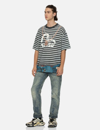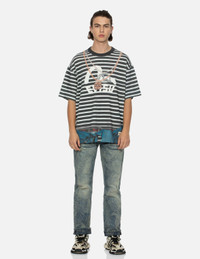 TROMPE-L'OEIL AND SEAGULL PRINT LOOSE FIT STRIPE T-SHIRT