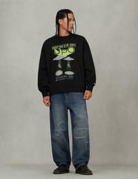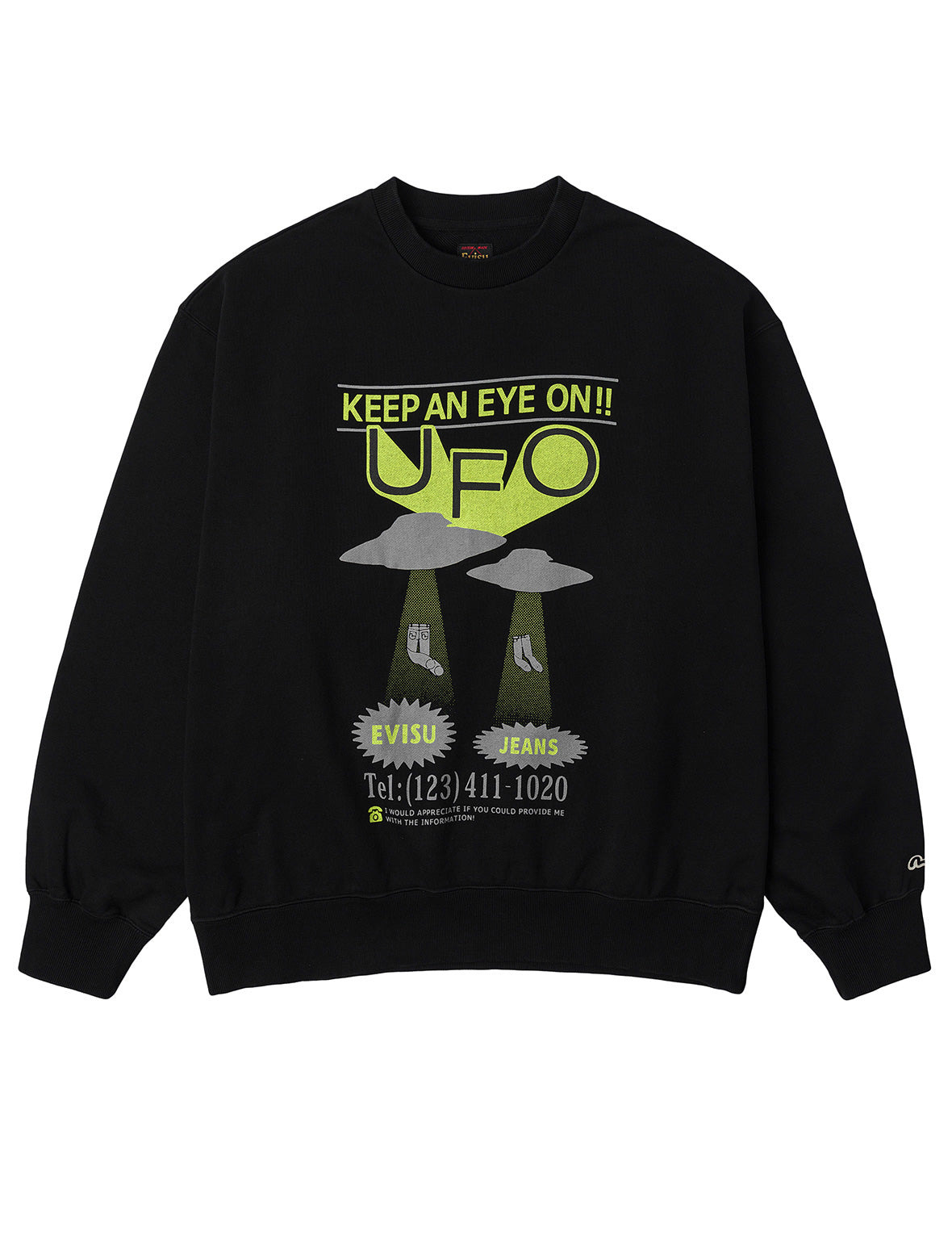 2EAEJM5SW6017RXCT The EVISU hoodie for the new season features a humorous and unique design, depicting the amusing scene of jeans being abducted by a UFO, resembling a quirky missing person notice. The vibrant print pairs perfectly with the Seagull applique on the cuffs, adding a touch of personality and creativity. - Relax fit - 100% Cotton - UFO print - Seagull applique