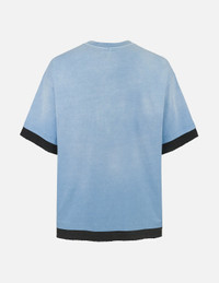 2ESHTM5TS1117OSCT This vintage-washed T-shirt from EVISU features a spray-painted faux chest pocket and slogan print, adding a touch of fun to the overall design. The standout element is the 2-in-1 design, with the exposed underlayer incorporating deliberately created distressed details, enhancing the overall depth of the T-shirt. - Oversized - 100% Cotton - Spray-painted faux chest pocket and slogan print - Washed and distressed details - 2-in-1 design