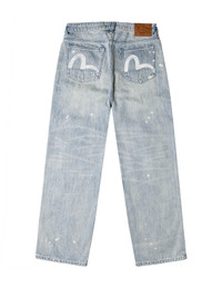 2EAEJM5JE6006LFDN This pair of jeans features heavy washing, incorporating patchwork design and vintage treatment, showcasing a unique retro style. The pants have rust marks, distressed details, utility stitching, paint splatters, and washed whisker effects, complemented by the brand's Seagull print for added flair. Whether for daily wear or casual activities, these jeans will enhance your look with personality and style. - Loose fit - 100% Cotton - Seagull print - Washed, patchwork design, and vintage treatment - Zip fly, 5 pockets
