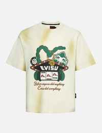 2EAHTM4TS8057RXCT Themed around "Virtual Vacation," this T-shirt has undergone a washing process to achieve a unique effect. Featuring brand motifs of Seagulls and lucky slot machines, along with Godhead, logo and slogans, it showcases a stylish and distinctive personality. FIT & STYLING: RELAX CARE HAND WASH INSIDE OUT AND SEPARATELY DO NOT BLEACH HANG DRY ONLY COOL IRON ON REVERSE SIDE IF NEEDED STEAM IRONING MAY CAUSE IRREVERSIBLE DAMAGE DO NOT DRY CLEAN DO NOT IRON ON PRINT
