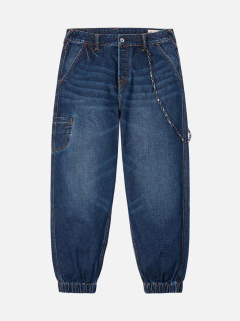 Multi-pocket and Seagull Crane Print Loose Fit Washed Denim Joggers