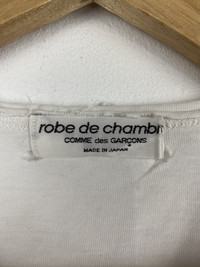 Distressed Comme des Garcons Robe De Chambre T-shirt FEEL FREE TO OFFER YOUR REASONABLE PRICE 📩 PLEASE READ ALL THE DESCRIPTION CAREFULLY BEFORE BUYING. FEEL FREE TO ASK IF YOU HAVE ANY QUESTION BEFORE BUYING. DESCRIPTION 📌 ACTUAL SIZE MEASUREMENT SIZE ON TAG : ? CHEST PIT TO PIT : 18 Inch TOP TO BOTTOM : 22.5 Inch CONDITION : Used COLOUR : White DEFECT : Please refer photos carefully before make an offer/BIN. ‼️THIS IS AN USED ITEM. SO DON'T EXPECT IT TO BE PERFECT OR NEW CONDITION‼️ ATTENTION 🔴Please pay close attention to measurements provided. 🔴Do not rely on tag size as pre-worn items may have been altered, stretched or shrunk & vintage size do not directly translate the modern sizes. 🔴The best way to ensure a correct fit is to compare our measurement with the measurements of a similar item that you know fits you well. Thankyou very much and Happy shopping!