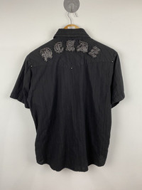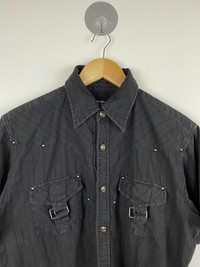In The Attic Buttons Up Shirt Punk Style FEEL FREE TO OFFER YOUR REASONABLE PRICE 📩 PLEASE READ ALL THE DESCRIPTION CAREFULLY BEFORE BUYING. FEEL FREE TO ASK IF YOU HAVE ANY QUESTION BEFORE BUYING. DESCRIPTION 📌 ACTUAL SIZE MEASUREMENT SIZE ON TAG : M CHEST PIT TO PIT : 21.5 Inch TOP TO BOTTOM : 26.5 Inch CONDITION : Used COLOUR : Black DEFECT : Please refer photos carefully before make an offer/BIN. ‼️THIS IS AN USED ITEM. SO DON'T EXPECT IT TO BE PERFECT OR NEW CONDITION‼️ ATTENTION 🔴Please pay close attention to measurements provided. 🔴Do not rely on tag size as pre-worn items may have been altered, stretched or shrunk & vintage size do not directly translate the modern sizes. 🔴The best way to ensure a correct fit is to compare our measurement with the measurements of a similar item that you know fits you well. Thankyou very much and Happy shopping!