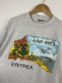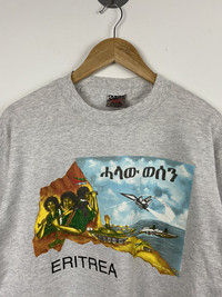 Vintage 90s Eritrea Border Guard War T-shirt FEEL FREE TO OFFER YOUR REASONABLE PRICE 📩 PLEASE READ ALL THE DESCRIPTION CAREFULLY BEFORE BUYING. FEEL FREE TO ASK IF YOU HAVE ANY QUESTION BEFORE BUYING. DESCRIPTION 📌 ACTUAL SIZE MEASUREMENT SIZE ON TAG : L CHEST PIT TO PIT : 22.5 Inch TOP TO BOTTOM : 27 Inch CONDITION : Used COLOUR : Silver DEFECT : Please refer photos carefully before make an offer/BIN. ‼️THIS IS AN USED ITEM. SO DON'T EXPECT IT TO BE PERFECT OR NEW CONDITION‼️ ATTENTION 🔴Please pay close attention to measurements provided. 🔴Do not rely on tag size as pre-worn items may have been altered, stretched or shrunk & vintage size do not directly translate the modern sizes. 🔴The best way to ensure a correct fit is to compare our measurement with the measurements of a similar item that you know fits you well. Thankyou very much and Happy shopping!