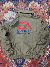 RARE💥BULK DEAL‼️ Vintage Electronic Arts (EA) Gaming Promo Light Jacket and Promo Adjustable Cap FEEL FREE TO OFFER YOUR REASONABLE PRICE 📩 PLEASE READ ALL THE DESCRIPTION CAREFULLY BEFORE BUYING. FEEL FREE TO ASK IF YOU HAVE ANY QUESTION BEFORE BUYING. DESCRIPTION 📌 ACTUAL SIZE MEASUREMENT SIZE ON TAG : L CHEST PIT TO PIT : 27.5 Inch TOP TO BOTTOM : 27 Inch CAP SIZE : OSFA CONDITION : Used COLOUR : Army Green DEFECT : Please refer photos carefully before make an offer/BIN. ‼️THIS IS AN USED ITEM. SO DON'T EXPECT IT TO BE PERFECT OR NEW CONDITION‼️ ATTENTION 🔴Please pay close attention to measurements provided. 🔴Do not rely on tag size as pre-worn items may have been altered, stretched or shrunk & vintage size do not directly translate the modern sizes. 🔴The best way to ensure a correct fit is to compare our measurement with the measurements of a similar item that you know fits you well. Thankyou very much and Happy shopping!