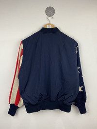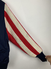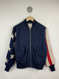 The Rodeo Crowns American Flag Motive Knitted Sleeves Bombers FEEL FREE TO OFFER YOUR REASONABLE PRICE 📩 PLEASE READ ALL THE DESCRIPTION CAREFULLY BEFORE BUYING. FEEL FREE TO ASK IF YOU HAVE ANY QUESTION BEFORE BUYING. DESCRIPTION 📌 ACTUAL SIZE MEASUREMENT SIZE ON TAG : S CHEST PIT TO PIT : 22 Inch TOP TO BOTTOM : 25 Inch CONDITION : Used COLOUR : Dark Blue DEFECT : Please refer photos carefully before make an offer/BIN. ‼️THIS IS AN USED ITEM. SO DON'T EXPECT IT TO BE PERFECT OR NEW CONDITION‼️ ATTENTION 🔴Please pay close attention to measurements provided. 🔴Do not rely on tag size as pre-worn items may have been altered, stretched or shrunk & vintage size do not directly translate the modern sizes. 🔴The best way to ensure a correct fit is to compare our measurement with the measurements of a similar item that you know fits you well. Thankyou very much and Happy shopping!