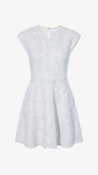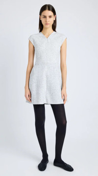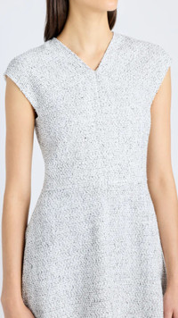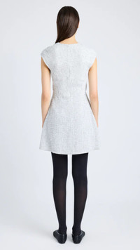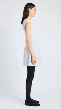 White Label The Manon Dress in Tweed is crafted in a slim A-line silhouette with a shallow V-neckline, creating a flattering and streamlined profile. Designed in alabaster with black accents, it falls to a mini-length hem, while the sculptural skirt adds subtle structure. Featuring cap sleeves and a back zipper closure, this fully lined dress is tailored for a slim fit.