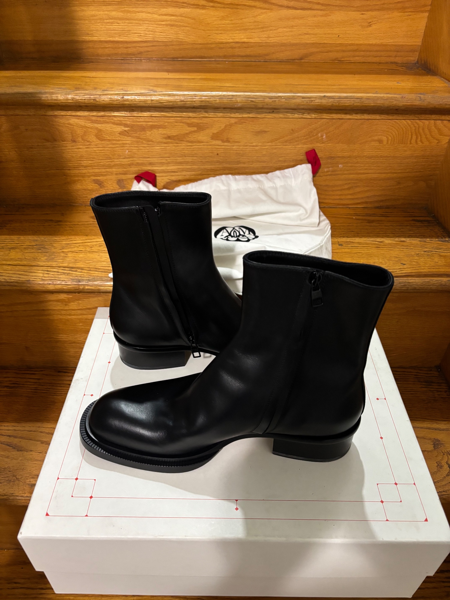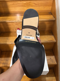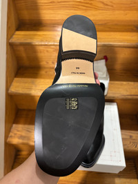 Shoes look like they've never been worn before. A bit of damage on the box and the dust bag is a little dirty.