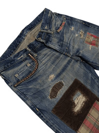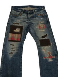 Conditions…as is.. Unique Hysteric Glamour jeans to date. Still in great conditions. Slim fit-straight, are low-rise and include the classic pocket studs. Please check all pictures provided carefully. Please check your measurements as tags size not run consistently across country/vintage items. Size on tag: 30 Actual measurements: (inches) Approx. +- Waist: 15.5 (31) Inseam: 33 Length(waist to bottom): 42 Front rise: 8.5 Thigh: 11 Knee: 8 Leg opening: 7.5(15) All measurements taken when garments laid flat. All sales are final. No Return No Refund. Most of our sales items have been used, therefore tiny flaws due to the effect of wear is common. All items have thoroughly examined and any flaws will be noted in the description. No return unless items are grossly misrepresented. Any questions please ask before purchase. Thank you.