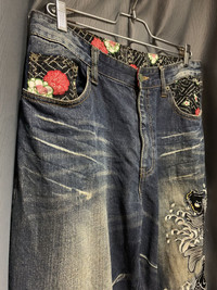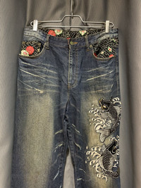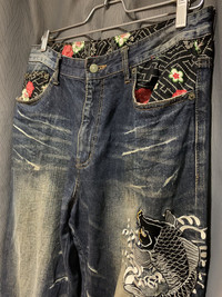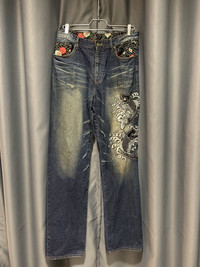 Conditions…as is…Overall still very good vintage/ preowned conditions. Please check all pictures provided carefully. Please check your measurements as tags size not run consistently across country/vintage items Measurements: (inches) Approx. +- Waist: 15.5(31) Inseam: 33.5 Length: 45.5 Front rise: 12 Thigh: 12.5 Knee: 10 Leg opening: 8.5 All measurements taken when garments laid flat. All sales are final. No Return No Refund. Most of our sales items have been used, therefore tiny flaws due to the effect of wear is common. All items have thoroughly examined and any flaws will be noted in the description. No return unless items are grossly misrepresented. Any questions please ask before purchase. Thank you.