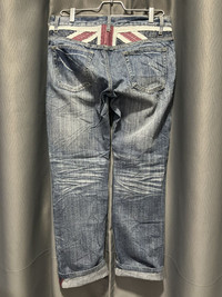 Conditions…as is…good vintage/ preowned conditions. Please check all pictures provided carefully. Please check your measurements as tags size not run consistently across country/vintage items Measurements: (inches) Approx. +- Waist: 32 Inseam: 30 Length (waist to bottom): 39 Front rise: 8.5 Thigh: 12 Knee: 8.5 Leg opening: 15(7.5) All measurements taken when garments laid flat. All sales are final. No Return No Refund. Most of our sales items have been used, therefore tiny flaws due to the effect of wear is common. All items have thoroughly examined and any flaws will be noted in the description. No return unless items are grossly misrepresented. Any questions please ask before purchase. Thank you.