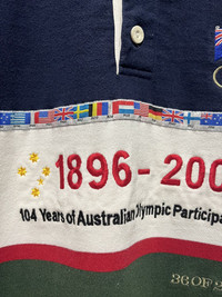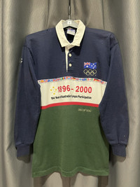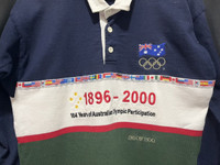RARE! 36/200 pieces. 104 years Australia Olympic participation rugby polo shirt. Conditions…as is… There's a hole on right shoulder. Overall still good vintage condition. Please check all pictures provided carefully. Please check your measurements as tags size not run consistently across country/vintage items Measurements: (inches) Approx. +- A: 20.5 B: 29.5 C: 21 D: 21.5 All measurements taken when garments laid flat. All sales are final. No Return No Refund. Most of our sales items have been used, therefore tiny flaws due to the effect of wear is common. All items have thoroughly examined and any flaws will be noted in the description. No return unless items are grossly misrepresented. Any questions please ask before purchase. Thank you.