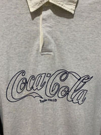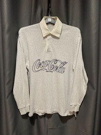 Vintage 90s Coca Cola rugby tee. Conditions…as is…Overall still good vintage/ preowned conditions.Tiny yellowish on collars. Please check all pictures provided carefully. Please check your measurements as tags size not run consistently across country/vintage items Size M on tag Measurements: (inches) Approx. +- A: 22 B: 28 C: 20 D: 23 All measurements taken when garments laid flat. All sales are final. No Return No Refund. Most of our sales items have been used, therefore tiny flaws due to the effect of wear is common. All items have thoroughly examined and any flaws will be noted in the description. No return unless items are grossly misrepresented. Any questions please ask before purchase. Thank you.