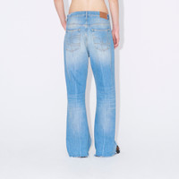 Avalon’ is a bootcut silhouette with a relaxed fit and a hint of flare, made in washed warm denim. The distressed hems, combined with the warm washed denim, creates a vintage-feeling, perfect for transforming your daily look into a breezy summer sensation. Josefine is 176 / 5'9" and is wearing 26/34. Pascal is 188 / 6´2” and is wearing 30/34. Product Details: - Shell: 100% cotton - 5 pocket construction - Cropped bootcut fit - Contrast stitching - EYTYS label on coin pocket - Logo embroidery on back pocket - Jacron label at waistband - Button fly - Comes in three lengths - Branded metal trims - Distressed raw hem - Faded press creases on front and back - Vintage indigo wash - Delivered folded - Made in Italy