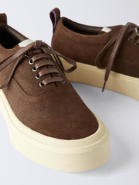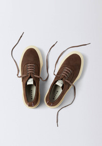 The ‘Mother II’ Waxy Suede Mahogany is an evolved iteration of our classic sneaker, the ‘Mother’. The plimsoll silhouette is enhanced by sharp-cornered rubber soles. Crafted from waxy Mahogany suede and detailed with a satin tongue label and piping on the pull-tab. Complete with a canvas insole with arch support. Product details - Upper: Suede - Lining: PU leather / Cotton - Rubber sole - Cotton lined insole - Arch support - Metal eyelets - Waxed cotton laces - Made in Vietnam