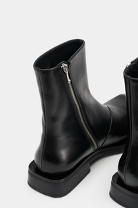 Product details • Upper: Cow Leather • Lining: Cow Leather • Sole: Rubber • Heel: Wood / Rubber • Insole: Leather Cover • Branding: Woven Label • Zip / Puller: Metal • Heel Elevation: 22mm • Made in Portugal