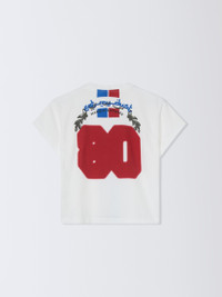 Cropped cap sleeve t-shirt. A shrunken fit t-shirt made in a soft cotton jersey, with cap sleeves and crewneck. Contrasting rib details at neck and sleeves add sporty retro vibe. Comes in the seasonal printed Joyride racer artwork. Product details • Shell: 95% organic cotton 5% elastane • Slim fit • Crew neck • Ribbed neckline • Eytys flag label at side • Print at chest • Made in Portugal