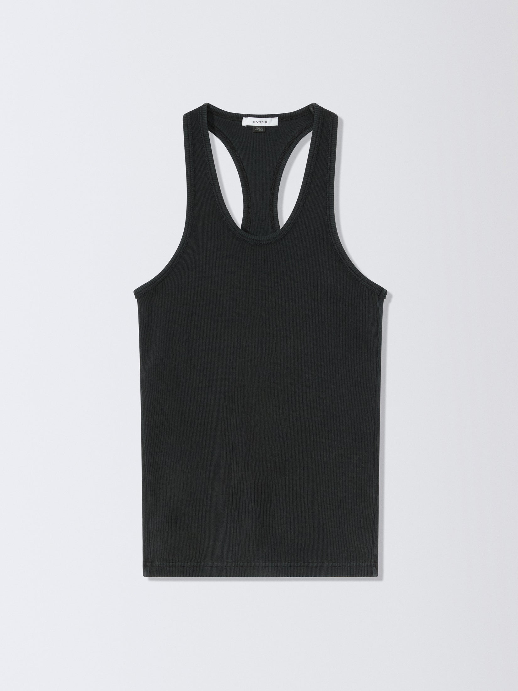 Ribbed tank top. Racer back tank top combining sporty and elegant details. Crafted in a mid-weight jersey rib with raw edged binding details. With EYTYS satin label branding on the front hem. Product details • Shell: 96% organic cotton 4% elastane • Slim fit • Eytys woven label at hem • Made in Portugal