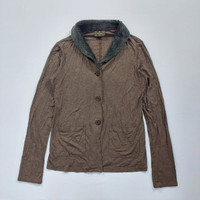 Size : Small - 18 In. Width - 24.5 In. Length - 5 In. Shoulder - 16 In. Shoulder ( Pit to pit ) - 26 In. Sleeve length - 18 In. Hem 9/10 Overall Usage Note : Missing lace belt. Composition : - 90% Viscose - 10% Rayon Description : - We recommend wearing it as a crumpled or rolled up. . It's cool to match it with a quirky look with the sleeves stretched out. - Button Ups fastening - Two side pockets - Brand engraved buttons - knitted fabric - Vintage piece - Made in Italy