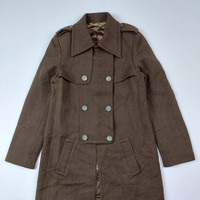 Size : 38 IT - 17.5 In. Width - 34 In. Length - 14 In. Shoulder ( Pit to pit ) - 23.5 In. Sleeve length - 23 In. Hem 9.5/10 Overall usage No Issue Composition : - 100% Lana Wool - 100% Ryon Cupro Lining Description : - Color Brown - Kihei Gold Chain - Button for fastening - Zipper down with riri brand - 90's rare piece - Made in Italy