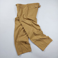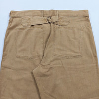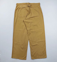 Size : - 38 Waistline (to be exact) - 42 In. Length - 13.5 In. Crotch - 30.5 In. Inseam - 11 In. Leg Opening 9/10 Overall usage Needs cleaning only. Removable stains due to usage. Composition : - 100% Cotton Description : - 5 traditional pockets - Wide leg - Light fabric - Khaki - Belt loops - Adjustable back strap - Made in USA