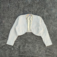 Size : Small - Medium - 20 In. Width - 15 In. Length - 5.5 In. Shoulder - 21 In. Sleeve length - 18.5 In. Hem 9.5/10 Overall Usage Materials : - 100% Silk - 75% Satin Linning Description : - Founded in 1990, by TSUMORI CHISATO, a Japanese fashion designer. Tsumori Chisato joined ISSEY MIYAKE inc. in 1977 and became a designer of “ISSEY SPORT”. In 1983, which was changed to “IS.Chisato Tsumori Design”, and she became a chief designer. TSUMORI CHISATO is based on a feature which has a large following simply for herwonderful prints. TSUMORI CHISATO belongs to A-net Inc. (ISSEY MIYAKE group) and other brands, such as Zucca, mercibeaucoup, are also the brands in the same company. - Entire laced embodiment design - Mini/Cropped Blazer - Archive piece - Super rare - Made in Japan