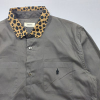 Size : 2 - Medium - 19 In. Width - 26 In. Length - 5.5 In. Shoulder - 21 In. Sleeve length - 20 In. Hem 9/10 Overall Usage. Composition : - 100% Cotton Description : - Leopard Collar Print - Kanazawa Collection - Mother pearl shaved buttons - Middle finger embroidery - Parallel pockets - Made in Japan