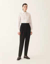 With a minimalist design and pleats, these cady trousers offer a perfect balance between comfort and versatility. An essential garment, entirely made in Italy with sustainable processes, to elegantly elevate any everyday look. The model is 1,77m tall and is wearing size IT 40 Details Cady Dart Fabric: 50% acetate – 50% viscose Lining: 88% acetate - 12% silk Made in Italy Model PAD215F358D8700000825