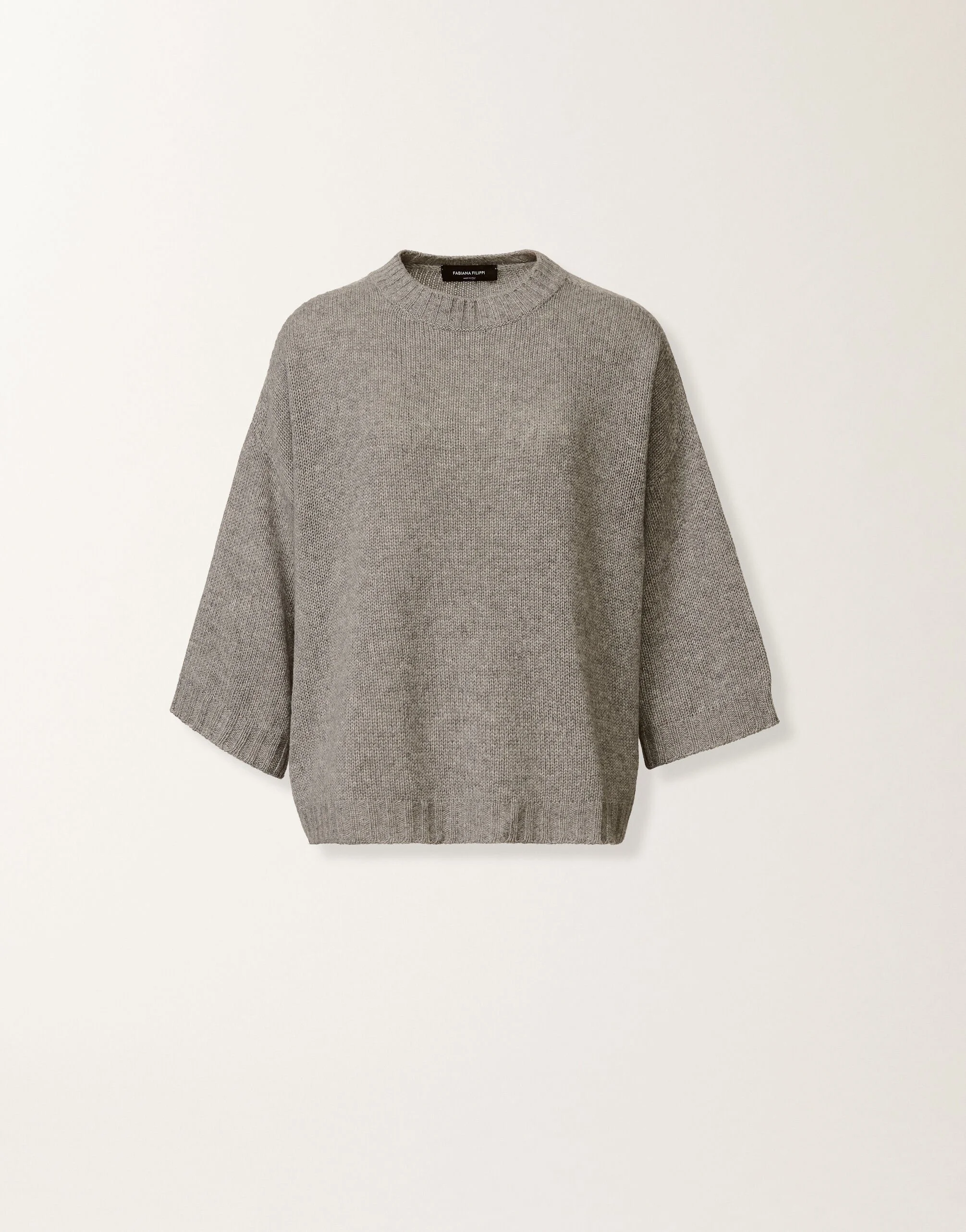 Crafted from pure cashmere, this crew-neck T-shirt expresses refined and simple elegance. Defined by an openwork knit stitch, it is entirely made in Italy through sustainable processes. The model is 1.78 meters tall and wears size IT 40. Details Cashmere Crew neck Open knit stitch Fabric: 100% cashmere Length: 57 cm (size S) Made in Italy Model MAD225F019N90000008132
