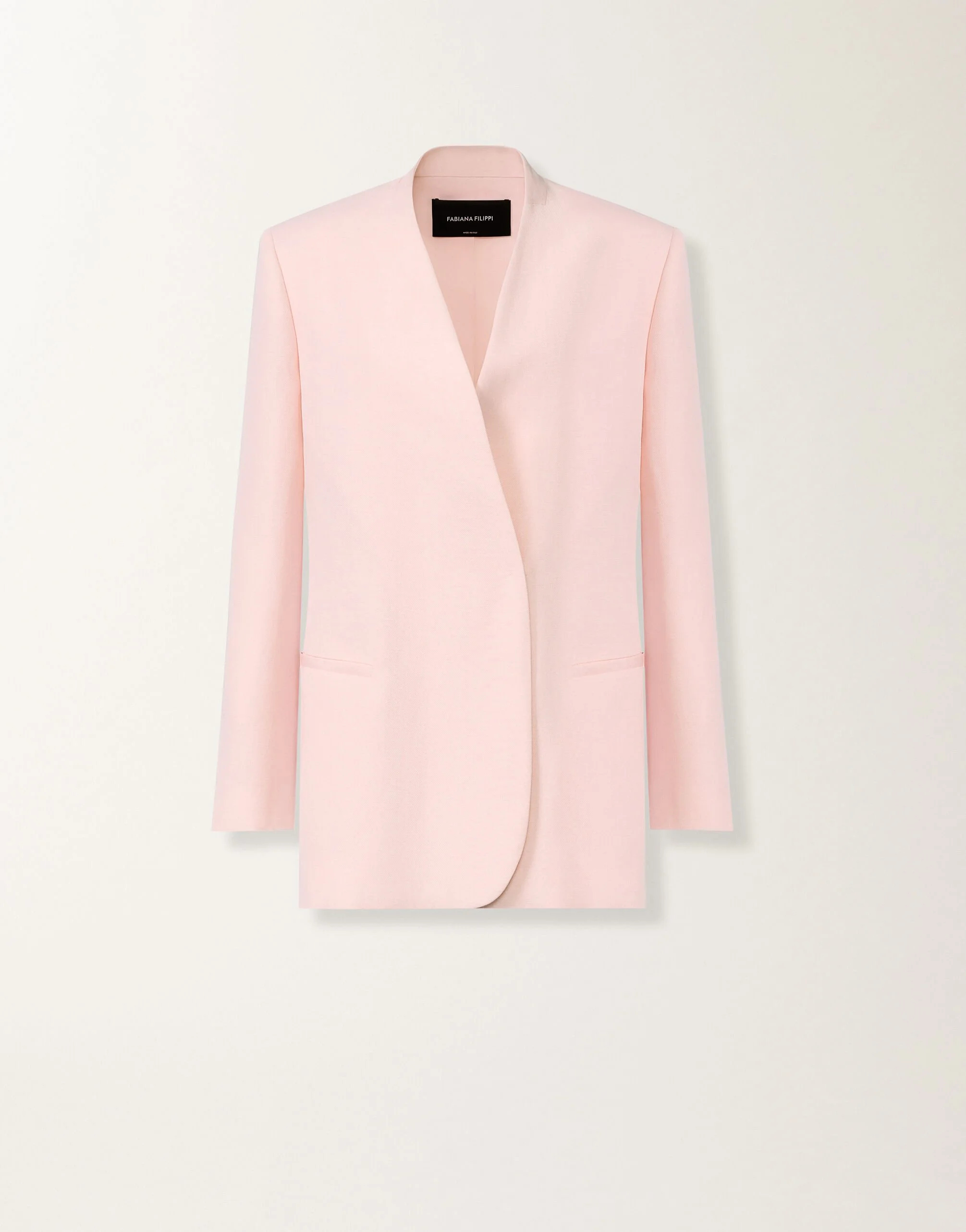 Oversized long jacket without lapels, crafted from a fluid blend of linen and viscose twill: linen provides structure, while viscose adds lightness and movement. An iconic fabric from Fabiana Filippi, reimagined to enhance new shapes and volumes. Embellished with a leather belt, it is made in Italy using sustainable processes. Details Fluid linen and viscose blend Leather belt Fabric: 64% viscose – 36% linen Lining: 85% acetate – 10% silk – 5% polyamide Made in Italy Model GCD276F661D54400002202