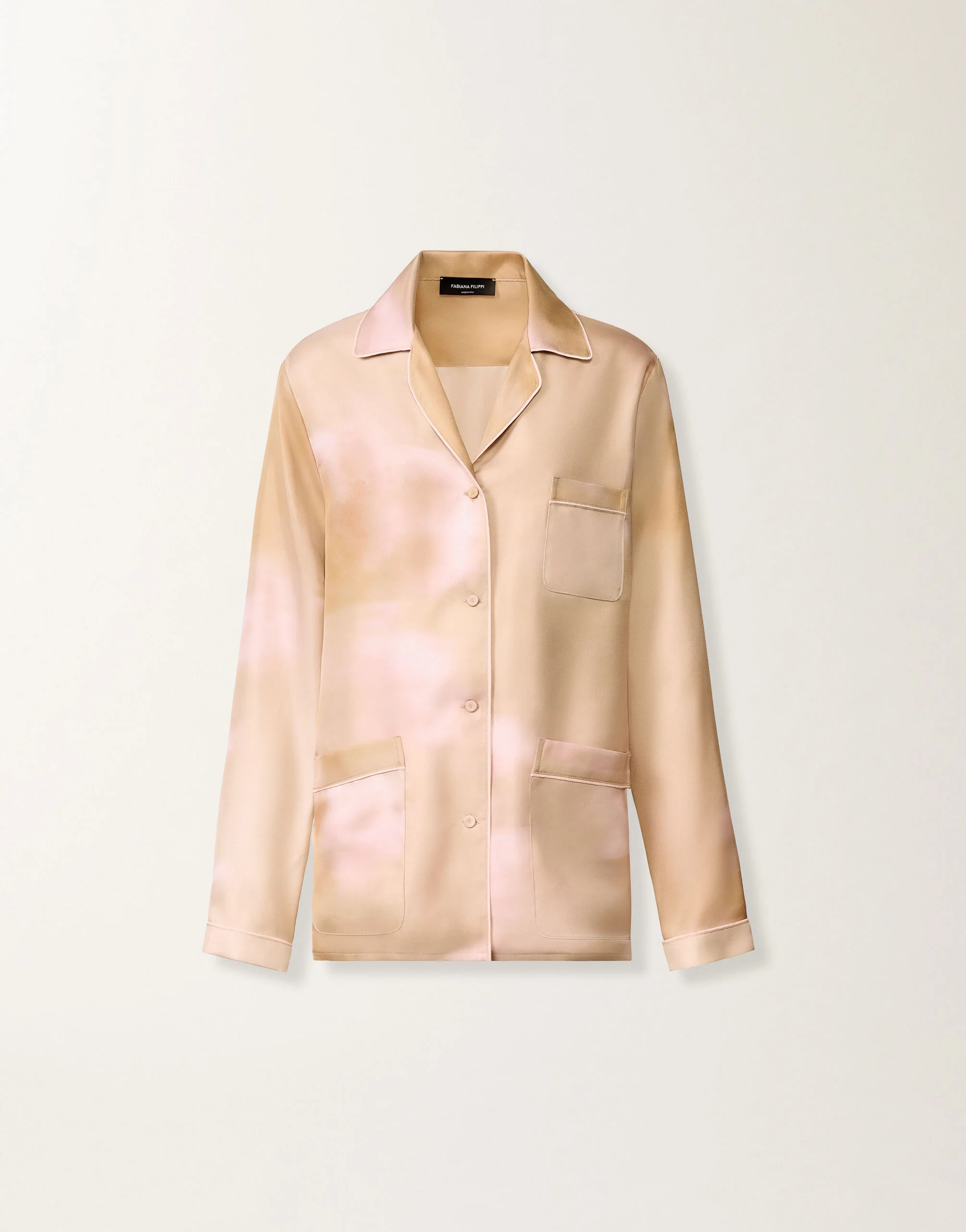 Printed silk twill shirt with a pajama-inspired style. The abstract floral-inspired print, featuring soft outlines and evocative colors, imparts an artistic and dynamic charm to the piece. Finished with pink piping, it is crafted in Italy through sustainable practices and high-precision digital printing techniques. Details Printed silk twill Pajama style Pink piping Fabric: 100% silk Made in Italy Model CAD276F773D9720000VR1