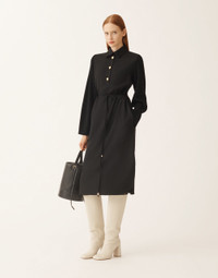 Crafted from fine flannel made of extra-fine yarns, this shirt dress offers a fluid drape that ensures lightness and versatility, with Platinum sleeves enriched by pepita details, entirely made in Italy using sustainable processes. The model is 1.79 meters tall and wears size IT 40. Details Flannel Pepita details Fabric: 94% virgin wool – 5% polyamide – 1% elastane Sleeves in Platinum: 75% wool – 15% silk – 10% cashmere Made in Italy Model ABD225F560L6810000825