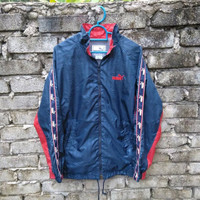 PLEASE READ THE DESCRIPTION AND POLICY BEFORE BUYING TAKE A VERY GOOD LOOK AT ATTACHED PICTURES ARM PIT TO ARM PIT : 21 inches BACK COLLAR TO HEM : 26 inches SLEEVES : 22 inches CONDITION : GOOD CONDITION/OVERALL 93% GOOD CONDITION MATERIAL: NYLON ACCEPT PAY PAL ONLY NO REFUND !! PLEASE GIVE ME UR CONTACT NUMBER TO EASE THE SHIPPING PROCESS THIS IS A USED ITEM. DONT EXPECT TO BE 100% AS NEW ITEM. VINTAGE IS RARE. RE-WORN ITEM IS COOL. CHOOSE Hariskita AS UR TRUSTED SELLER THANKS FOR VIEWING DONT FORGET TO HIT UR FAVOURITE BUTTON