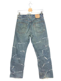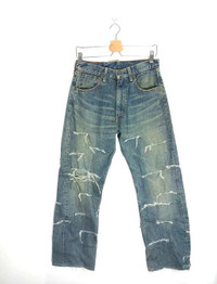 Rare Reconstructed /Distressed Made in Japan Redline Non-Selvedge Levi's 503. Manual measurements (while laying flat)(approx.) Waist 29 inches Length 39 inches Rise 11 inches Leg Opening 9 inches 3-5 days express shipping only !