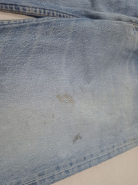 Distressed and worn-in. Please refer to the measurements before purchase. No refunds or returns.