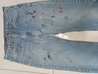 Great wash. No major flaws. Made in Canada. Waist 34" Length 42.5" Rise 11.5" Leg Opening 8' Please refer to the measurements before purchase. No refunds or returns.