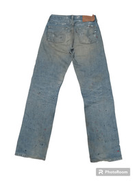 Great wash. Lots of interesting details and character. The last few batch of Made in USA Levi's 501 for the Japanese market. Waist 29" Length 42" Rise 11" Leg Opening 8' Please refer to the measurements before purchase. No refunds or returns.