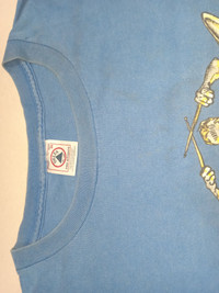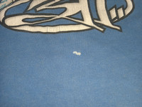 Thrashed and distressed condition. Very faded. A lot of small spots and tiny stains on front and back. Tagged XL, fits XXL. Please refer to the measurements before purchase. No refunds or returns.