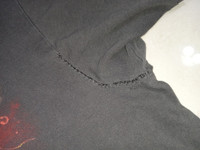 Thrashed condition. Sweet sweet sweet fading with the right amount of distressing on the right places. Holes on right shoulder and hem. Repairs on left pit. Single stitch top and bottom. Please refer to the measurements before purchase. No refunds or returns.